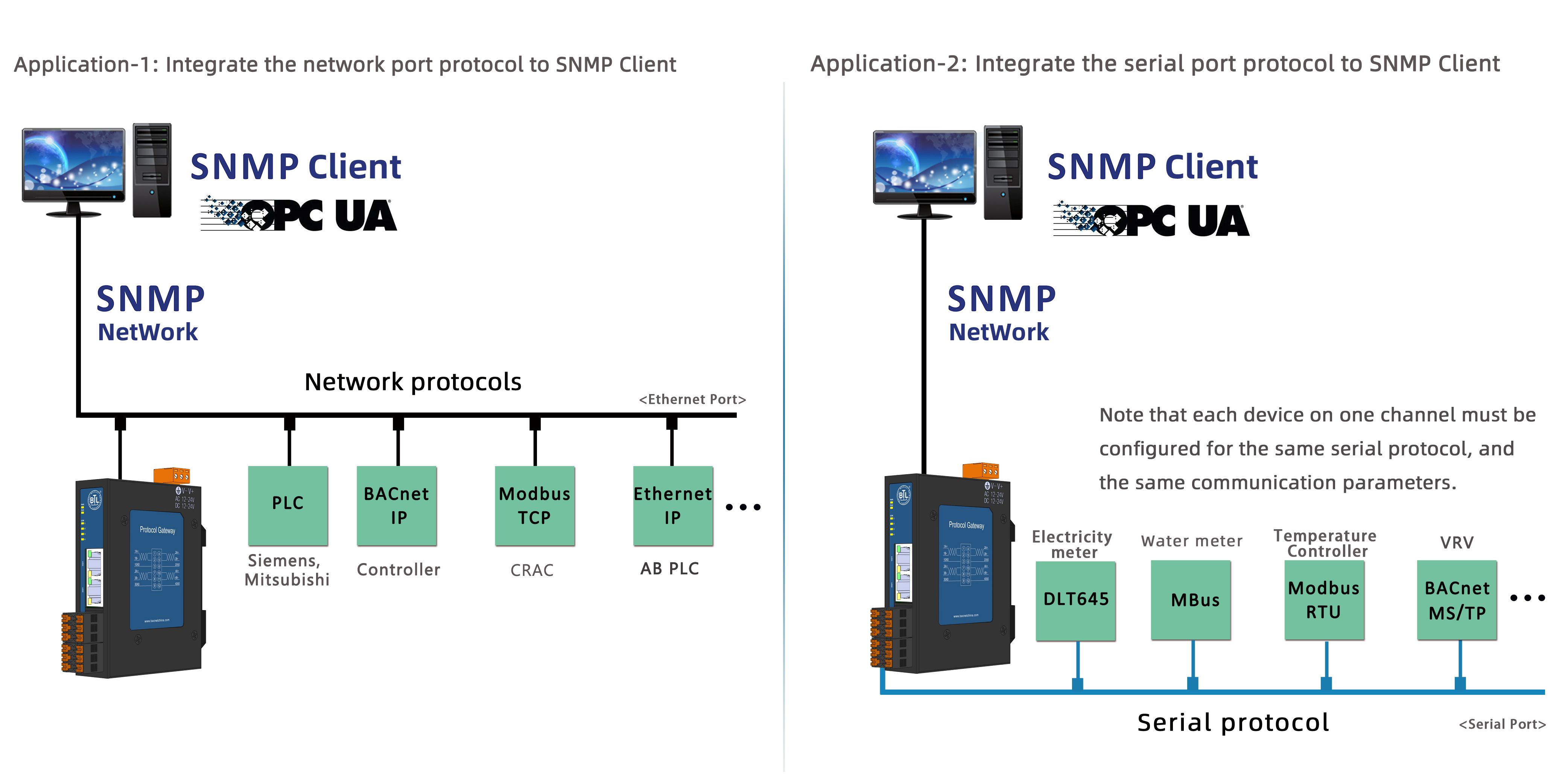 - Support convert more than 500 protocols to SNMP(v1,v2,v3),OPC UA;