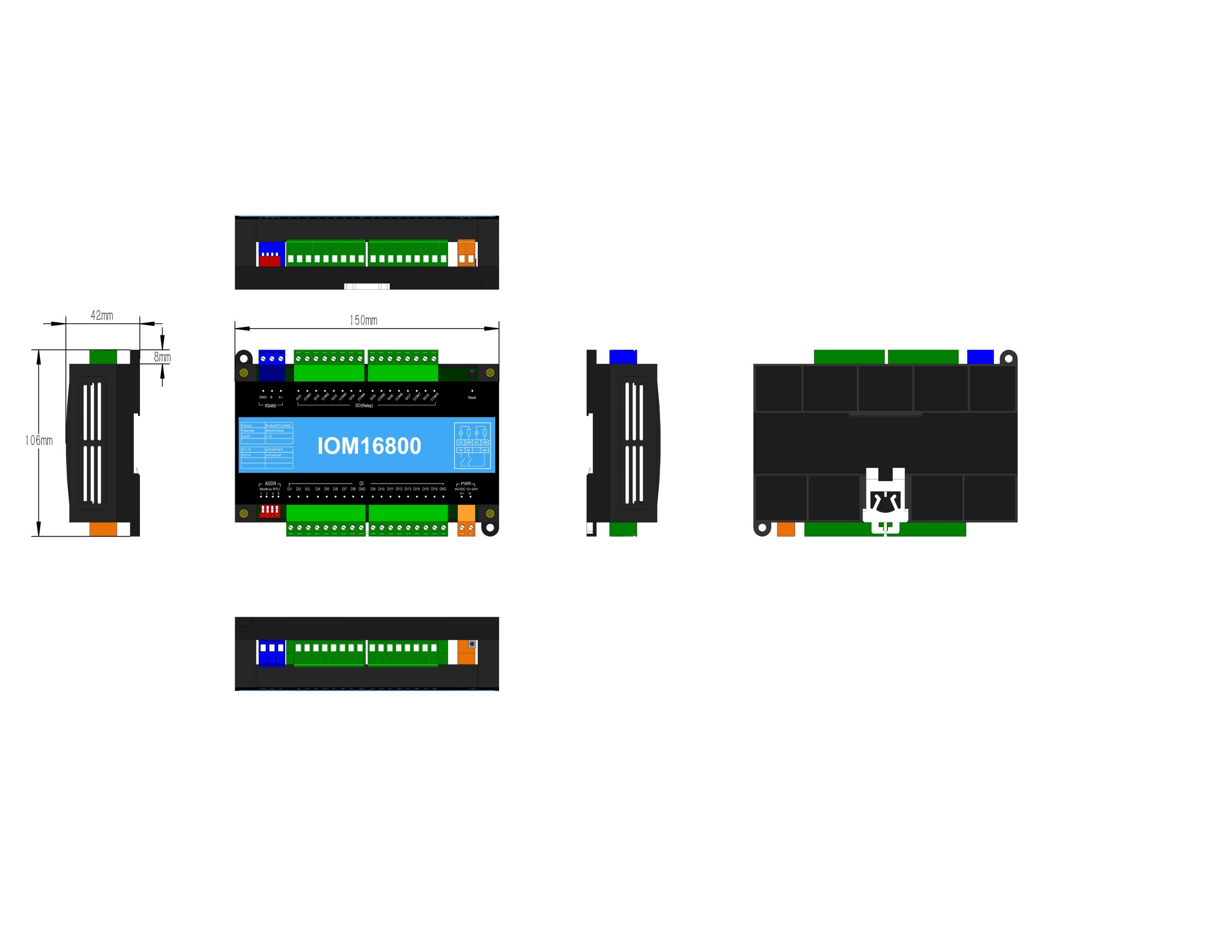 Supports Modbus RTU protocol for fast network connection with controllers that support the protocol and rapid I/O port expansion. Please refer to the instruction of Modbus RTU test tool for details.