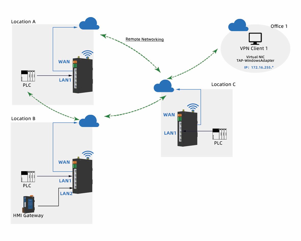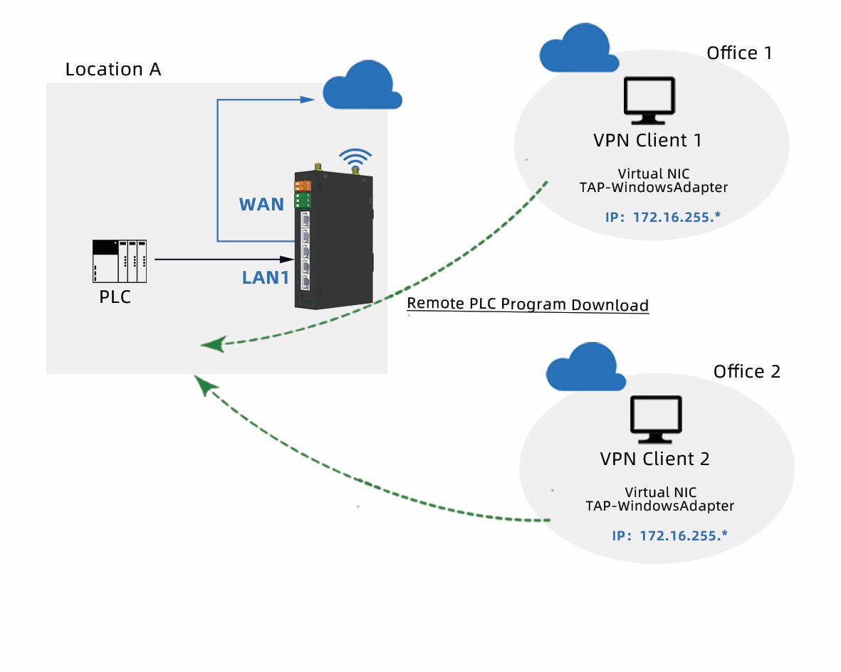 - Support VPN-based remote networking for PLC/HMI program upload/download and remote desktop maintenance;