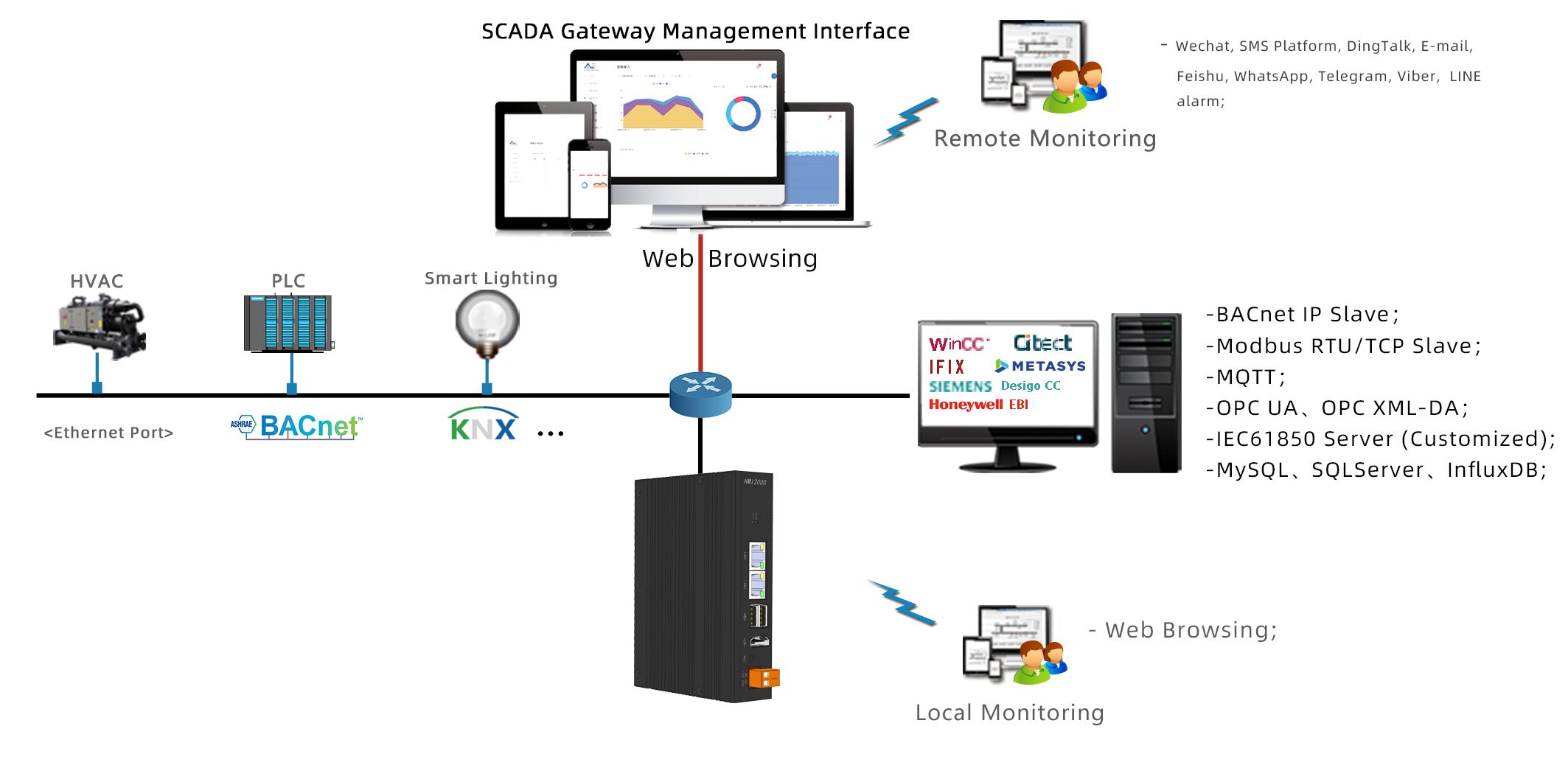 Web Scada gateway integrates other Milesgo gateways using OPC UA to achieve unified monitoring on a single screen. It is also tailored for the upgrading and retrofitting of traditional configuration systems, enabling web access to the Scada configuration through a browser.