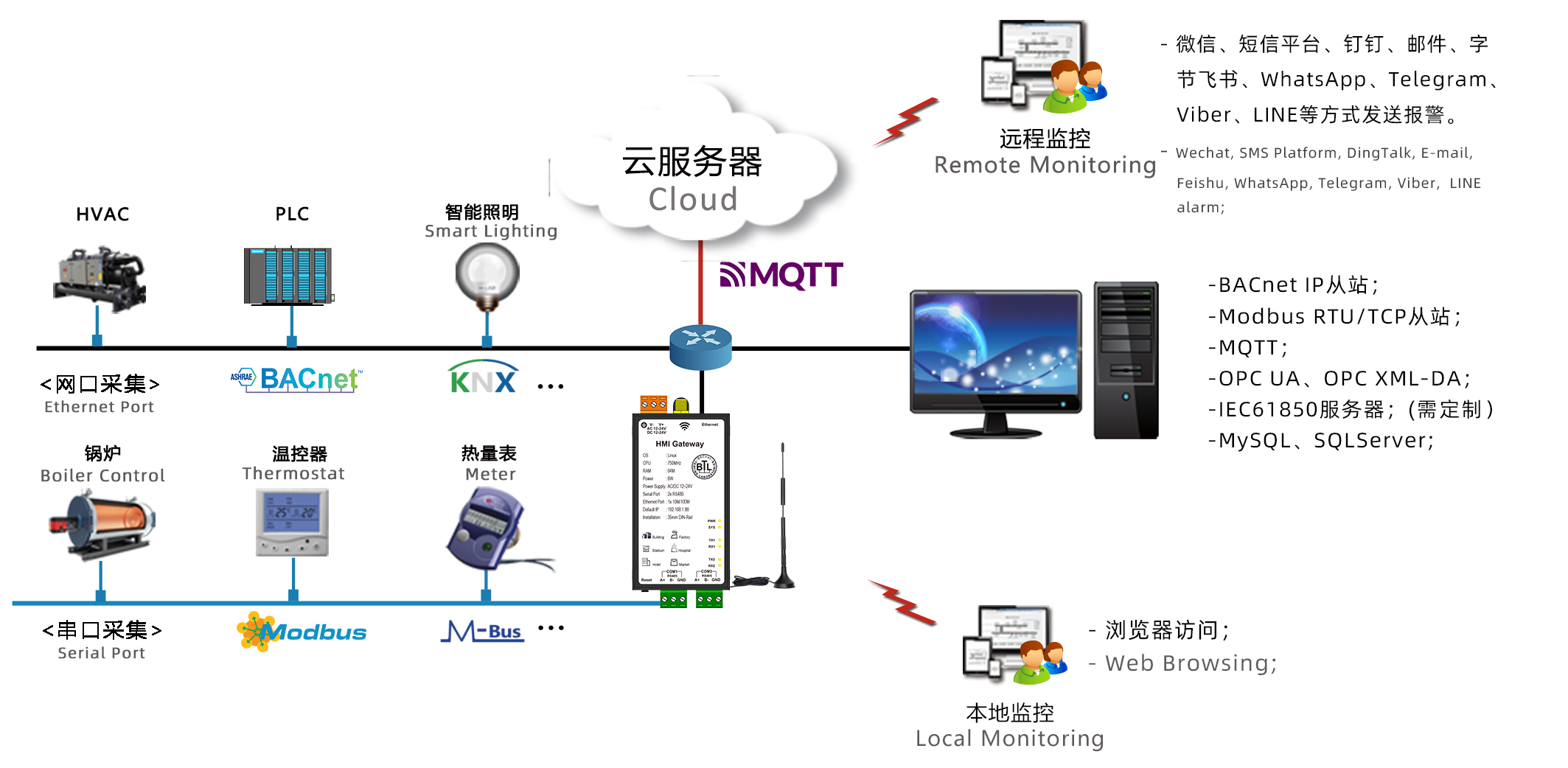 -支持转为BACnet服务器、Modbus服务器、IEC61850服务器、OPC UA服务器、MQTT服务器;