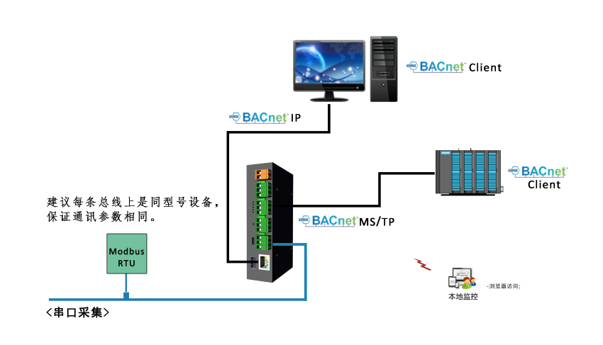 -支持常用Modbus RTU协议转为BACnet IP服务器;