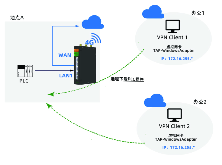 -支持VPN异地组网,可实现远程上下载PLC、触摸屏程序,远程桌面维护;